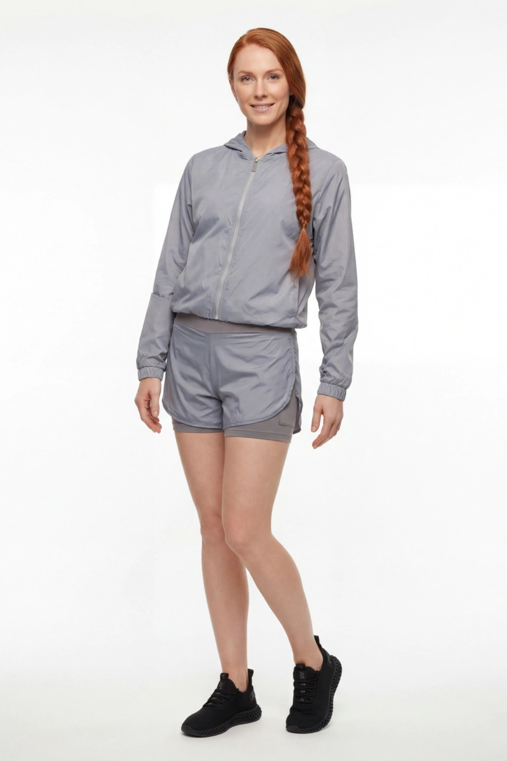 Versátil e prática, a Jaqueta Aura complementa perfeitamente nosso Shorts Duplo Aura, criando um look completo com muito estilo e performance para suas atividades.
